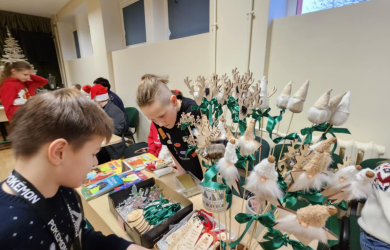 Artėjant gražiausioms metų šventėms, mūsų mokykloje vyko jau tradicija tapusi kalėdinė mugė, subūrusi bendruomenę bendram tikslui – dalintis gerumu. Mokiniai, mokytojai ir tėvai su džiaugsmu prekiavo pačių gamintais skanėstais, rankdarbiais ir kalėdinėmis dekoracijomis.