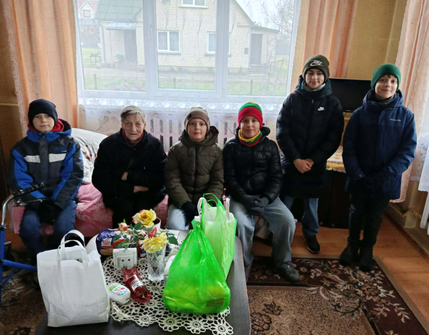 Ketvirtokai kartu su savo mokytoja Dainora, už paaukotas lėšas nupirko būtiniausių maisto produktų ir patys išnešiojo dovanas vienišiems seneliams. Vaikai turėjo galimybę ne tik padėti, bet ir pabendrauti, bei padovanoti šilumą tiems, kuriems jos labiausiai reikia.
