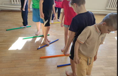Kad pėdutės būtų stipresnės ir sveikesnės, visuomenės sveikatos specialistė Krekenavos Mykolo Antanaičio gimnazijos pirmokus pamokė kaip jas mankštinti. Pasitelkiant tradicines ir netradicines priemones vaikai atliko pėdučių mankštos pratimus. Labiausiai vaikams smagu buvo pėdutėmis tvarkyti išmėtytus daiktus. O kad mankšta būtų įdomesnė ir smagesnė, vaikai jomis kūrė „Pėdučių paveikslus“. Įdėję tarp kojų pirštų flomasterį piešė įvairias linijas, kurias sujungus ir nuspalvinus įvairiomis spalvomis kiekvienam gavosi išskirtinis, puikus pėdučių menas. Vaikai atliko pėdos testą pasitelkiant plantografinį tyrimo metodą, kurio metu ji nudažoma spalvotais dažais ir atsistojama ant balto popieriaus lapo. Visiems buvo smalsu pažiūrėti kokios jų pėdutės.